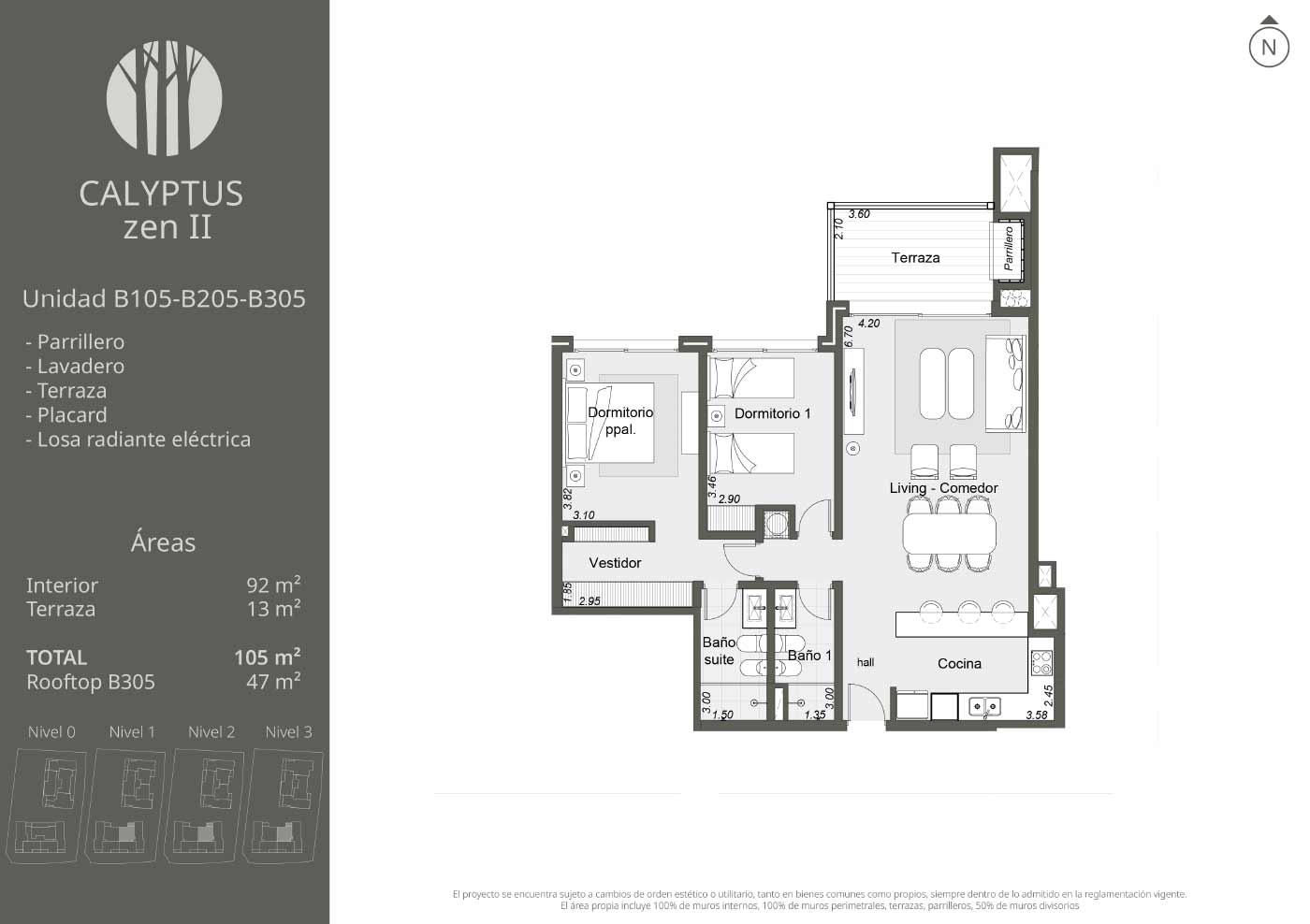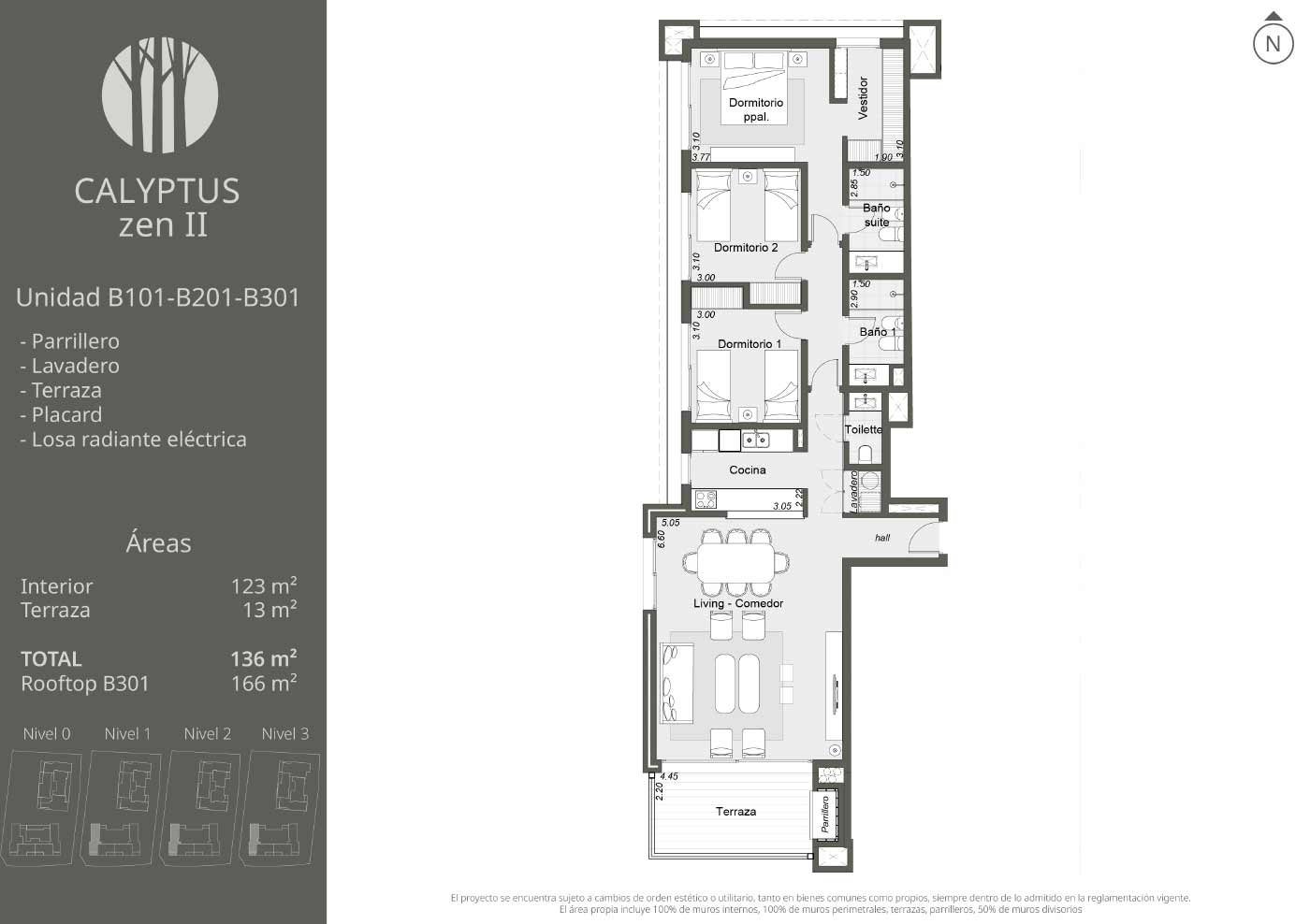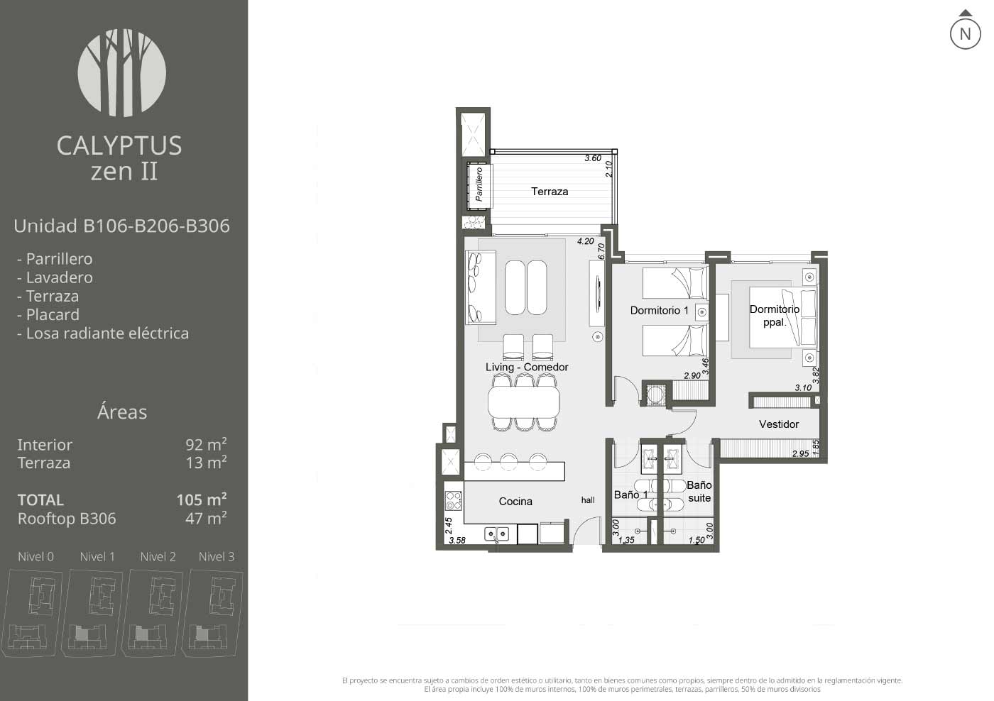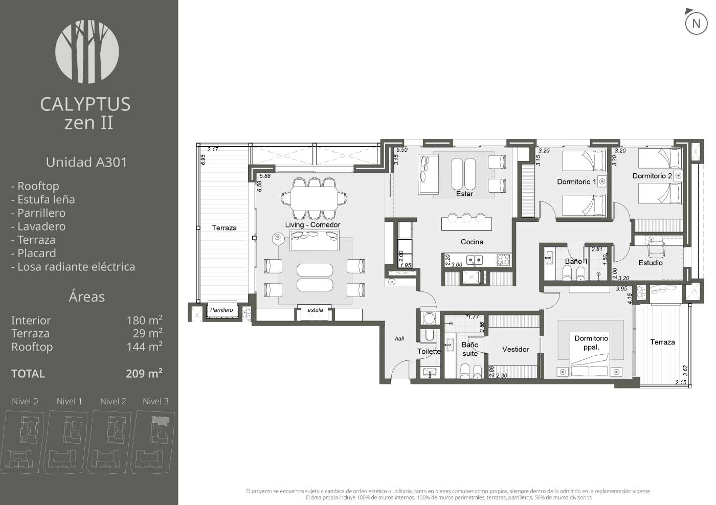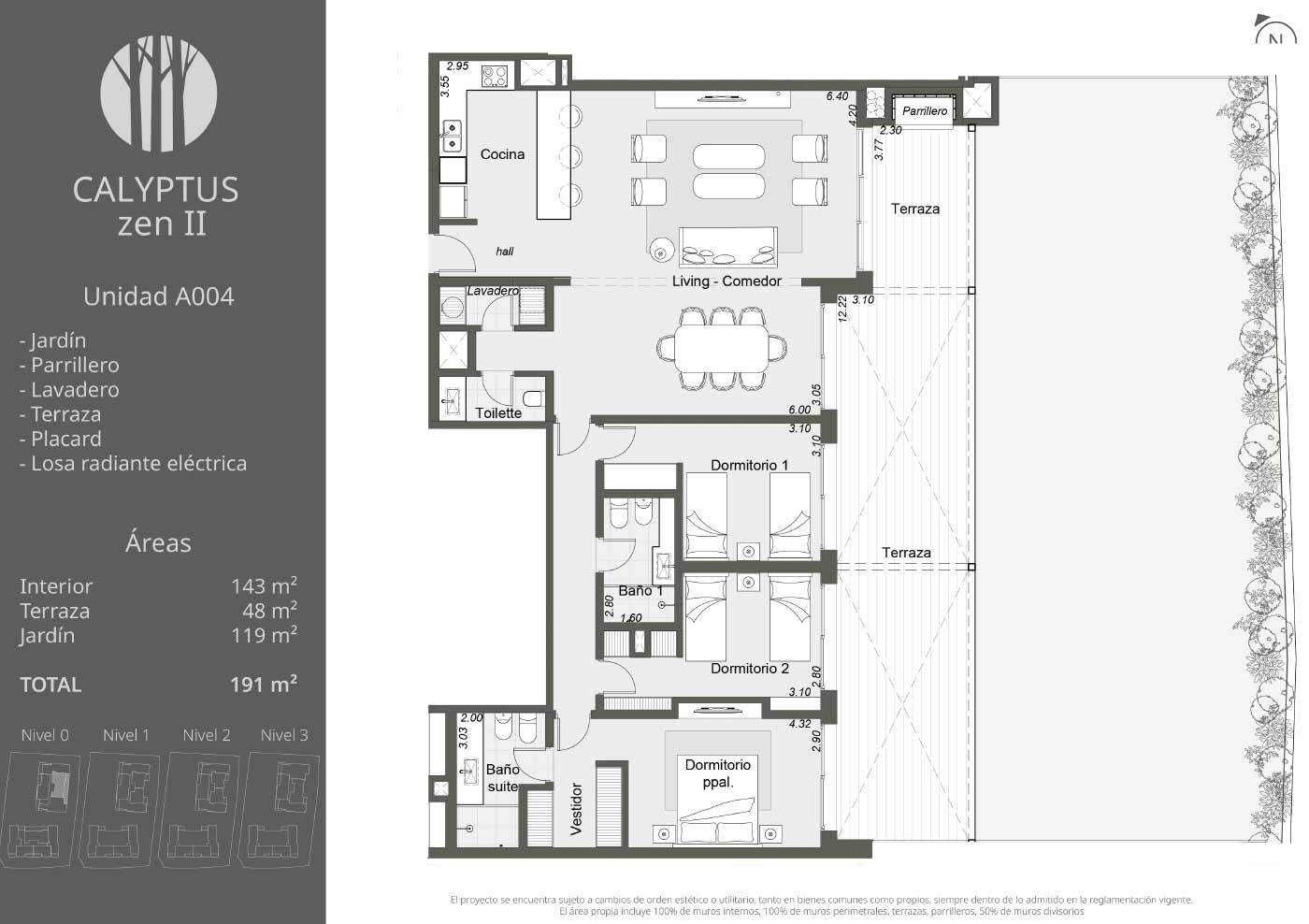 Exclusivas unidades de 2, 3 y 4 dormitorios que destacan por su amplitud y elegancia en el diseño. Cuentan con amplios ventanales que maximizan la luz natural y extensas terrazas con parrillero, que se abren a espacios verdes y jardines privados. Cada ambiente ha sido concebido para ofrecer una experiencia acogedora en perfecta armonía con la naturaleza.