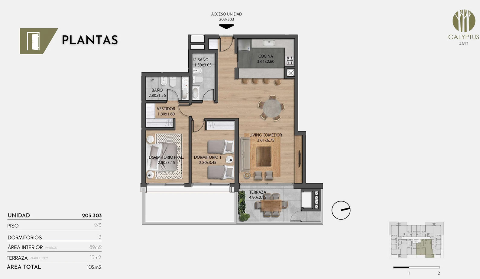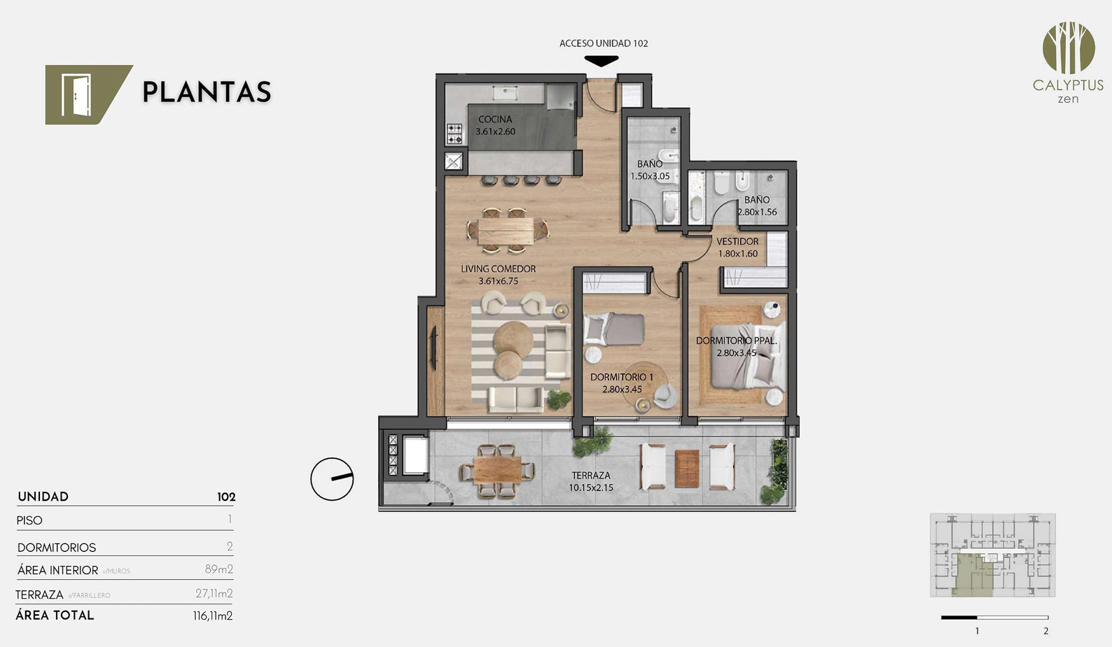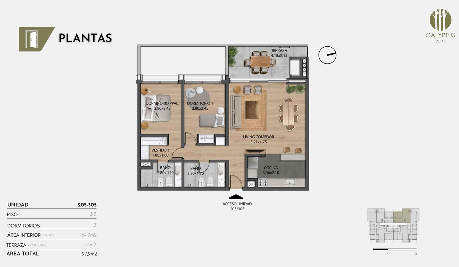 El edificio ofrece unidades de 2 y 3 dormitorios, en un entorno arbolado y tranquilo, cerca de servicios esenciales. Con terrazas amplias, parrilleros, terminaciones de calidad y cocheras simples y dobles, cada unidad combina confort y accesibilidad.